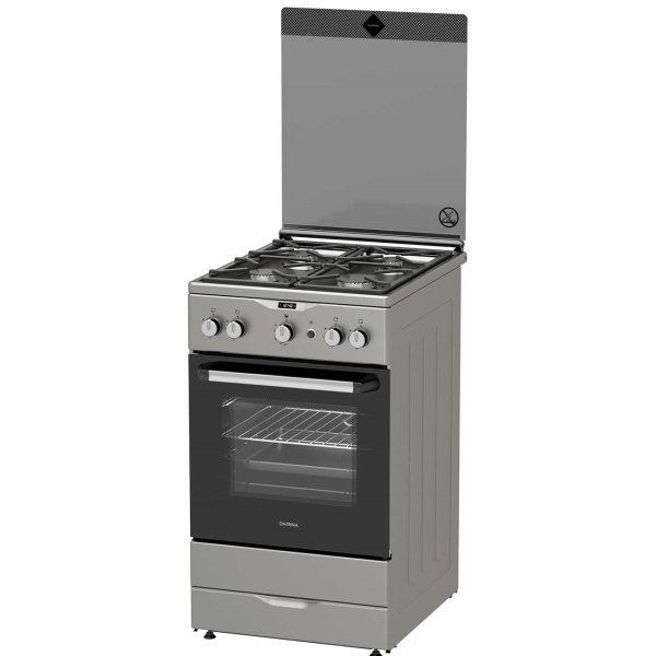 Объем духовки: 50 л. Тип гриля: газовый. Режимы работы духовки: 1. Количество конфорок: 4. Электроподжиг конфорок: автоматический. Решетка: стальная. Жиклеры для подключения газового баллона: Да. Габаритные размеры (В*Ш*Г): 85*50*60 см. Цвет: серебристый