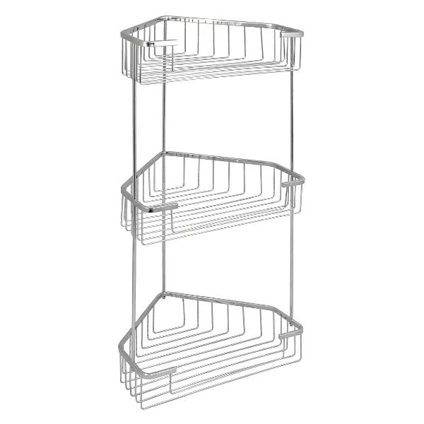 Гарантия: 1 год,Тип крепления: дюбель,Угловая: Да,Материал: нержавеющая сталь,Поверхность: глянцевая,Количество ярусов: 3,Цвет: хромированный,Вес: 1 кг,Высота: 64 см,Ширина: 20 см,Глубина: 20 см
