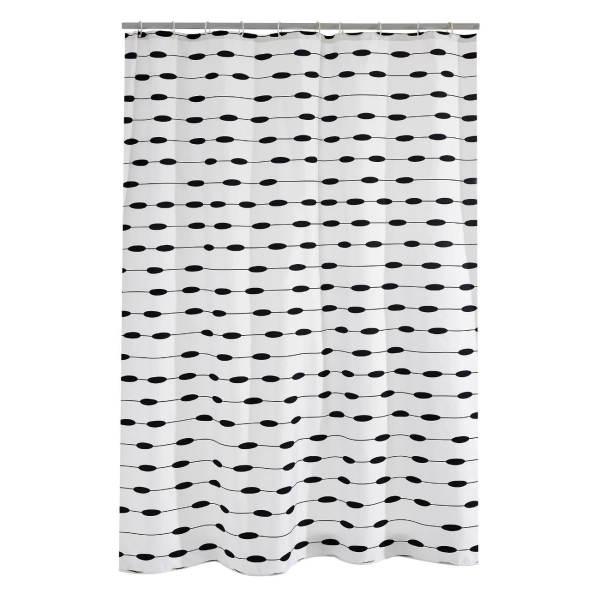 Гарантия: 1 год,Установка: на душевую штангу,Высота: 200 см,Ширина: 180 см,Материал: текстиль,Цвет: черный/ белый,С рисунком: Да