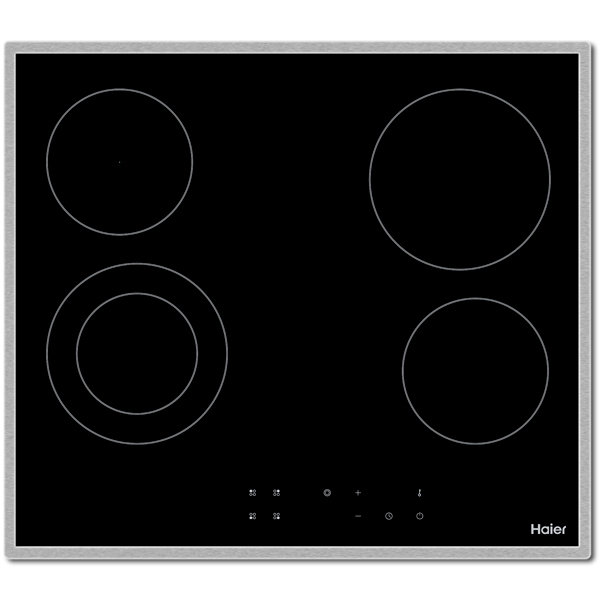 Размер ниши (Ш*Г): 564*494 мм. Количество конфорок: 4. Тип конфорок: Hi-Light. Расширение зоны нагрева конфорок: на 1-й конф.. Защита от детей: Да. Таймер: Да. Индикация выбранной мощности: Да. Цвет: черный. Цвет рамки: нерж. сталь