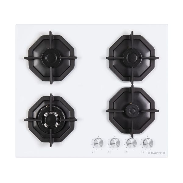 Электроподжиг конфорок: автоматический,Количество конфорок: 4,Газконтроль конфорок: Да,Минимальный огонь: Да,Размещение панели управления: спереди/справа,Материал варочной поверхности: закаленное стекло,Решетка: чугунные держатели,Цвет: белый